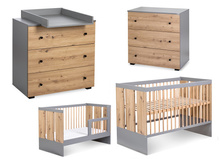 Zestaw mebli dziecięcych z Łóżeczkiem Grafit Dąb PAULINE