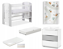 Zestaw mebli dziecięcych z Łóżeczkiem z Materacem z Przewijakiem Białe Popiel NATI