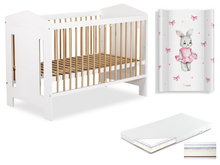 Łóżeczko drewniane 120x60 z Materacem z Przewijakiem Dąb AMELIA II