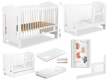 Łóżeczko drewniane 120x60 z Barierką ochronną z Materacem z Przewijakiem Białe DALIA