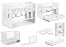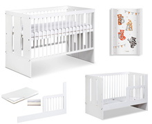 Łóżeczko drewniane 120x60 z Materacem z Przewijakiem Białe BLANKA