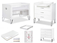 Zestaw mebli dziecięcych z Łóżeczkiem z Materacem z Przewijakiem Białe AMELIA