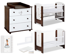 Zestaw mebli dziecięcych z Łóżeczkiem z Materacem z Przewijakiem Białe Orzech SAFARI ŻYRAFKA