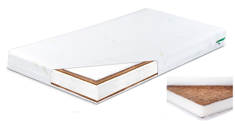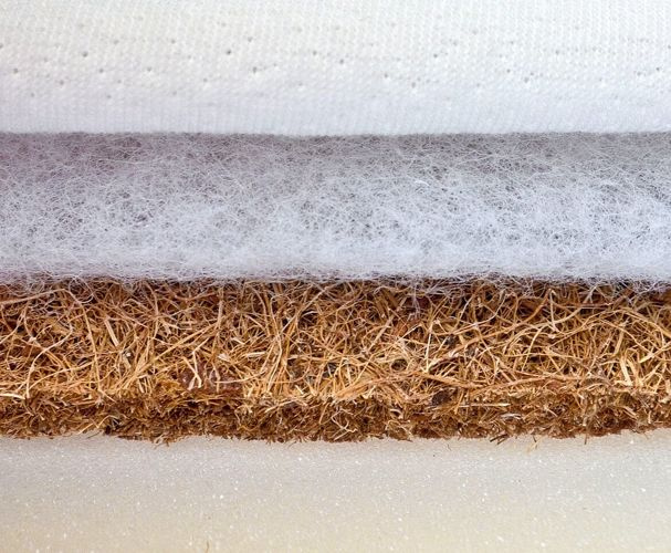 - wypełnienie materaca stanowią dwie maty kokosowe (2 x 1 cm) otulone włókniną puszystą, rozdzielone pianką poliuretanową (7 cm)