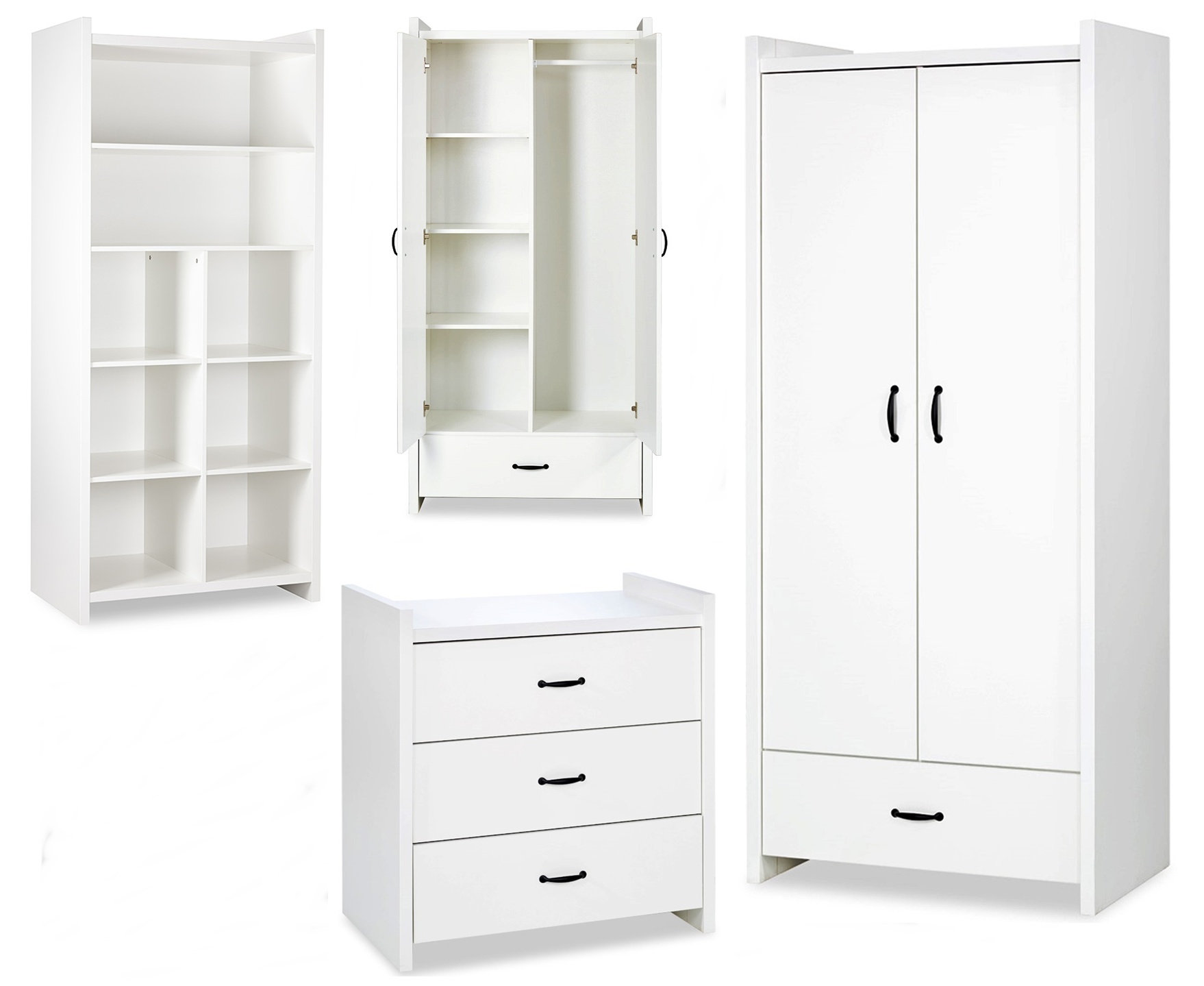 Zestaw mebli dziecięcych / młodzieżowych z Szafa, Regał, Komoda Białe AMELIA
