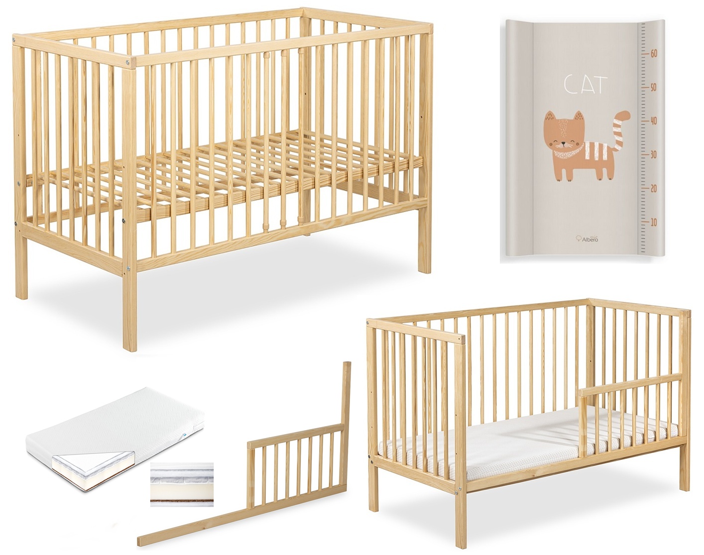 Łóżeczko drewniane 120x60 z Barierką z Materacem z Przewijakiem Sosna FRANIA