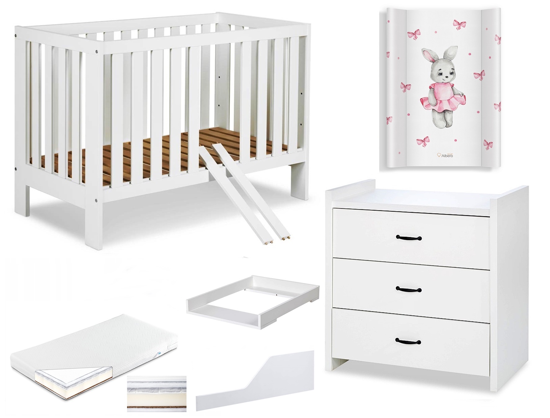 Zestaw mebli dziecięcych z Łóżeczkiem z Materacem z Przewijakiem Białe AMELIA II