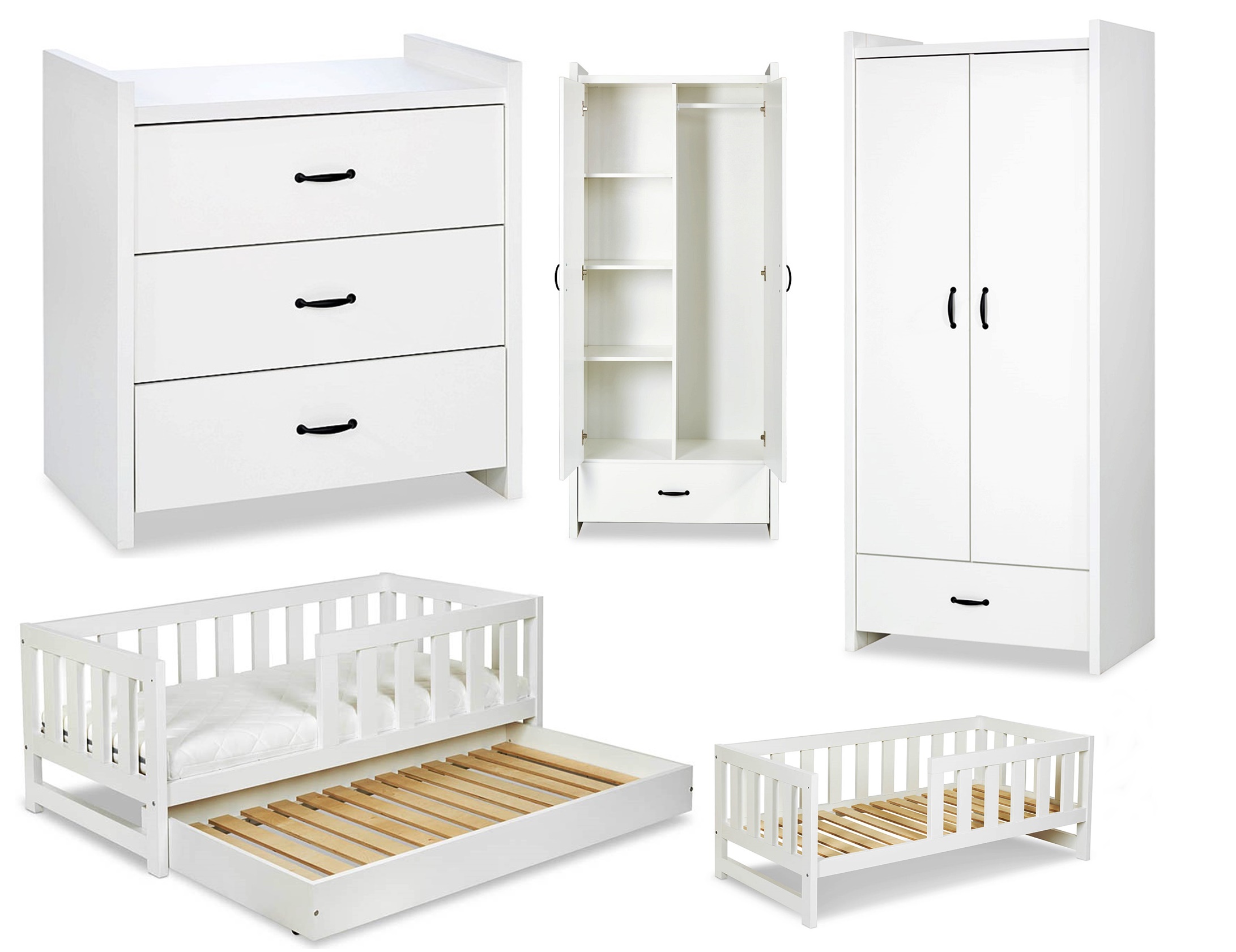 Minimalizm i elegancja w dziecięcym pokoju! AMELIA BIEL to kolekcja, która łączy ponadczasowy styl z funkcjonalnością, wpisując się w najnowsze trendy wnętrzarskie. Klasyczna biel rozświetli przestrzeń, a czarne uchwyty nadadzą meblom nowoczesnego, eleganckiego charakteru.