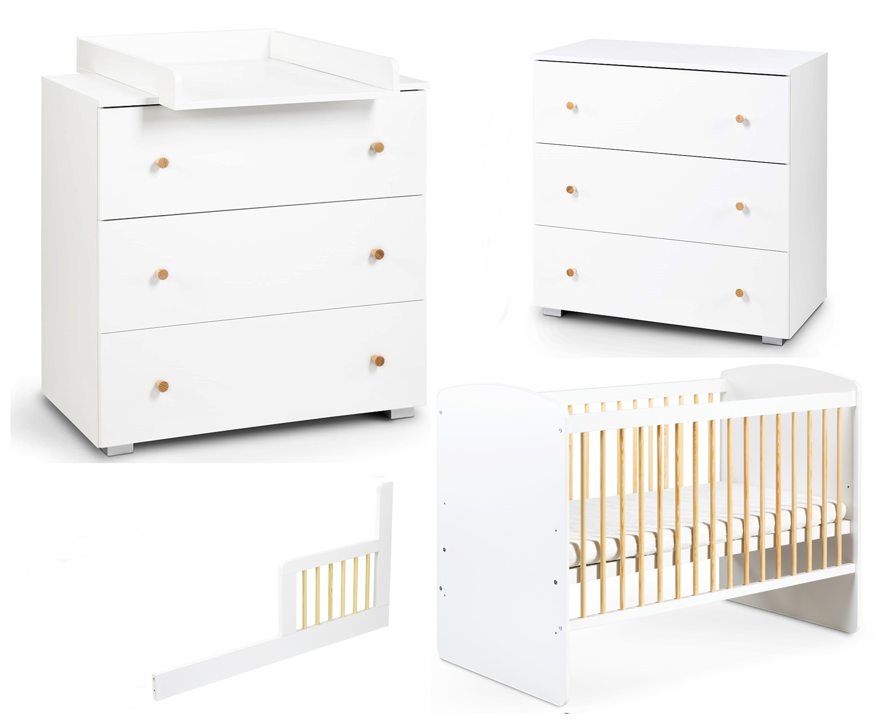 Zestaw mebli dziecięcych z Łóżeczkiem Białe Sosna KAROLINA
