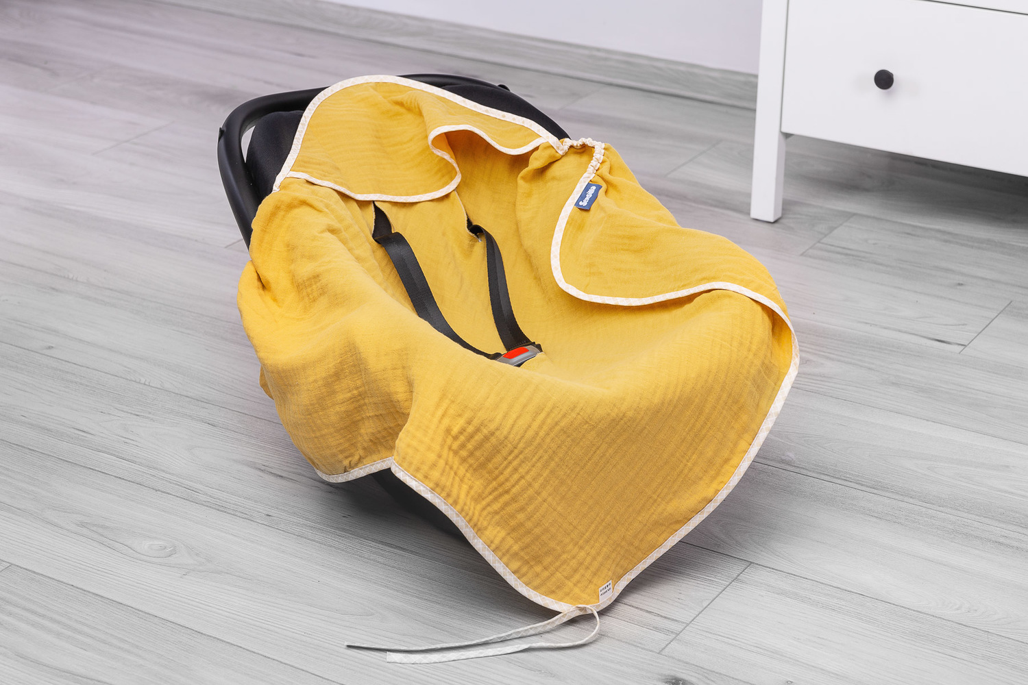 Otulacz Muślinowy do fotelika na lato 75x75 cm Musztardowy