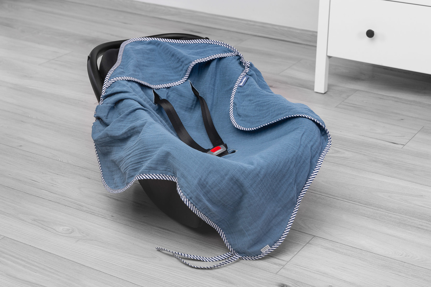 Otulacz Muślinowy do fotelika na lato 75x75 cm Niebieski