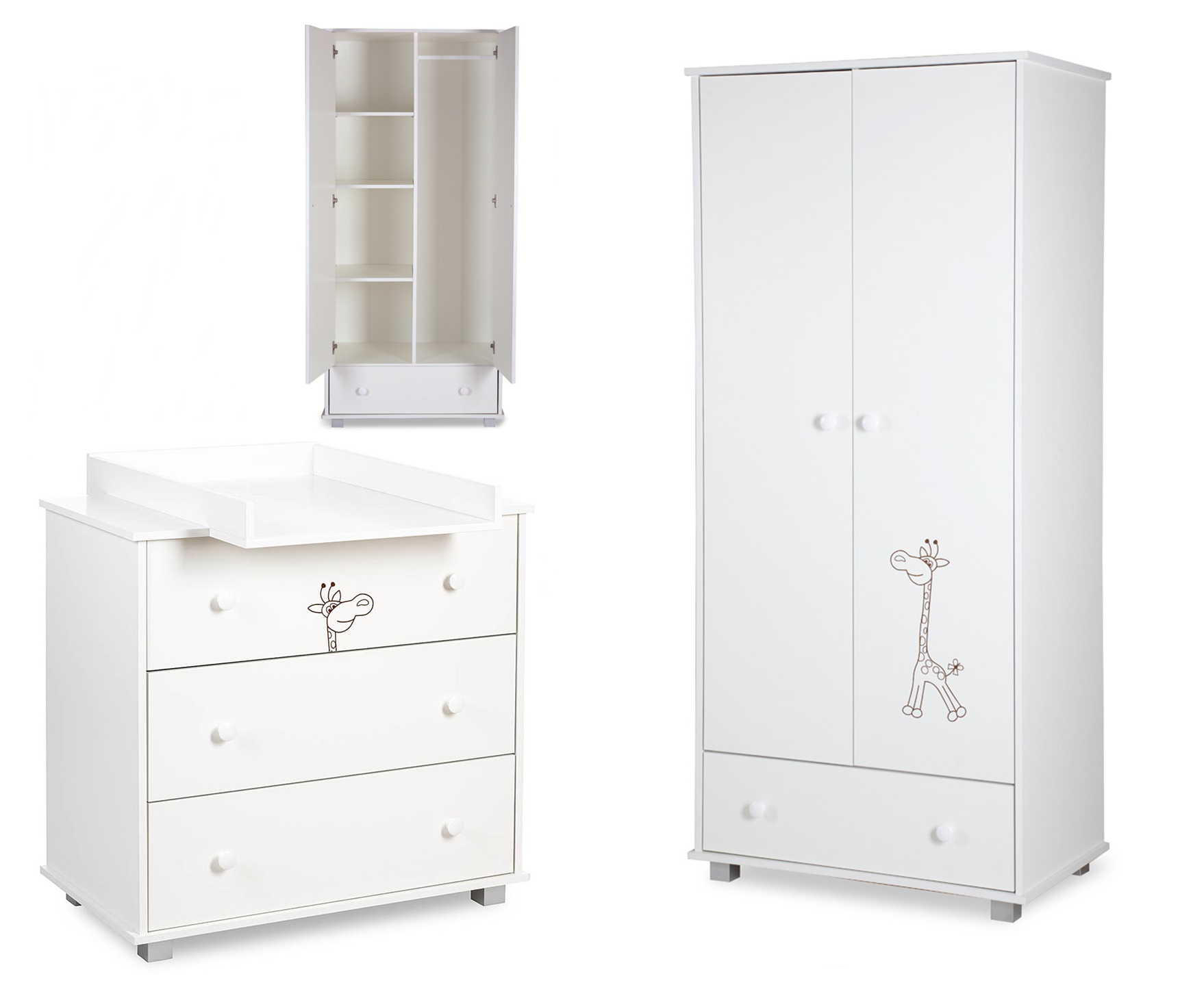 Zestaw mebli dziecięcych/młodzieżowych z Szafa, Komoda Białe SAFARI ŻYRAFKA