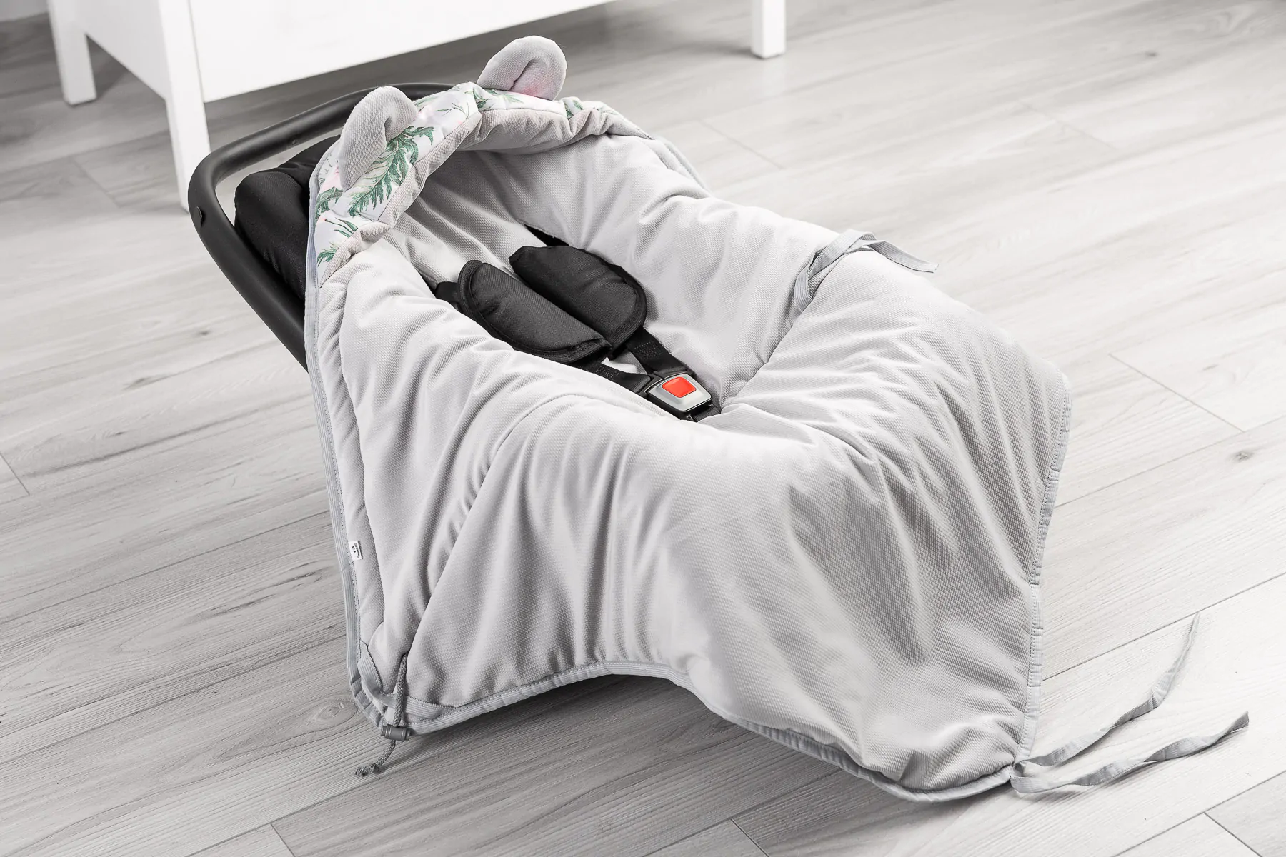 Otulacz do fotelika 90x90 cm Velvet Kwiaty Szary