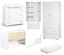 Zestaw mebli dziecięcych z Łóżeczkiem z Materacem z Przewijakiem Białe PAULA
