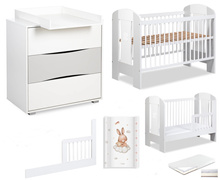 Zestaw mebli dziecięcych z Łóżeczkiem z Materacem z Przewijakiem Białe Popiel NATI